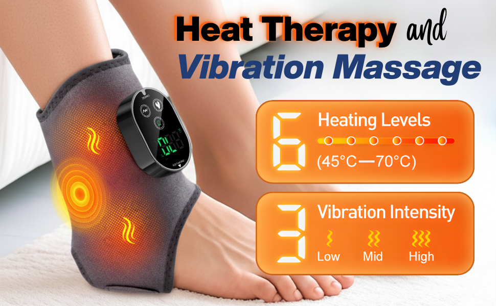 Relieve tension and relax muscles with this Foot & Ankle Massager. Enjoy 3 vibration modes, 6 heat levels, and an auto timer for customizable comfort—perfect for use on the foot, ankle, elbow, or arm.